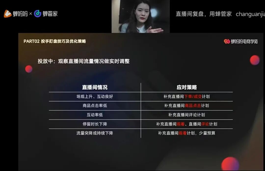 在看盘工作流中,针对其实时性的特点,蝉管家最近更新了许多相关的功能,有帮助主播、运营洞察直播实效的功能,也有帮助投手及时了解计划情况辅助启停的功能,这里分享给大家: