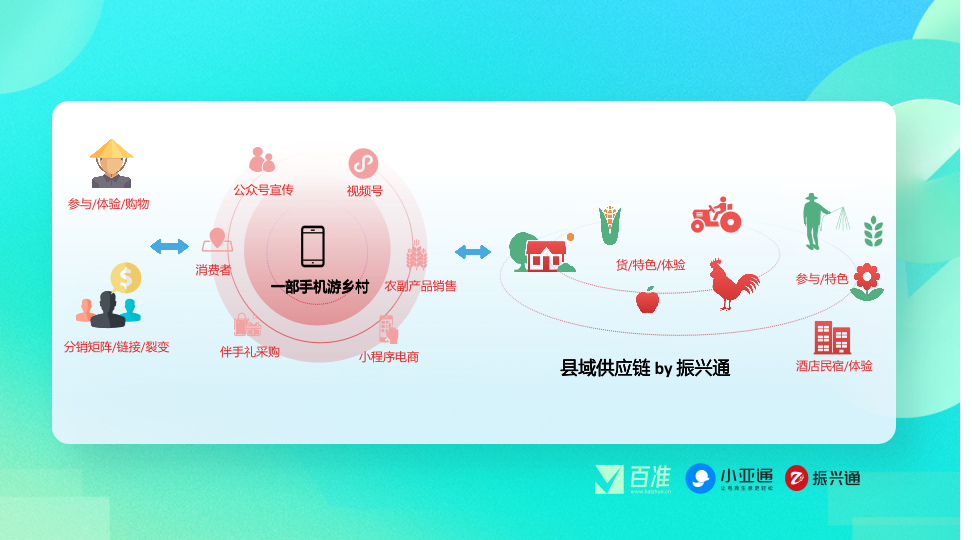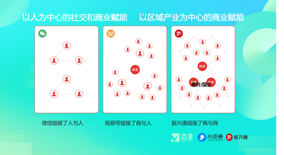 微信最广泛地链接了人与人, 视频号链接了商与人,形成了以人为中心的社交和商业赋能。振兴通则致力于打通商与商之间的联结,达到区域的内部资源协同。比如:视频号里的卖货商家有可能既是生产厂家,又是销售端。