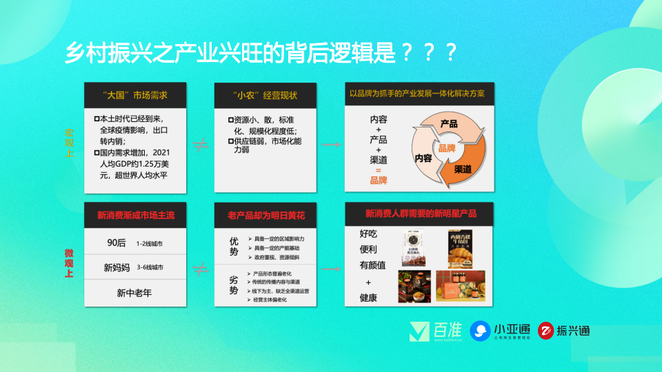 从微观上看,城市的消费趋势也在转变,需要更多好吃、便利、有颜值且健康的货。小农产品较难标准化,包装简单,没有故事,不符合当下年轻人、新妈妈和银发族的需求。