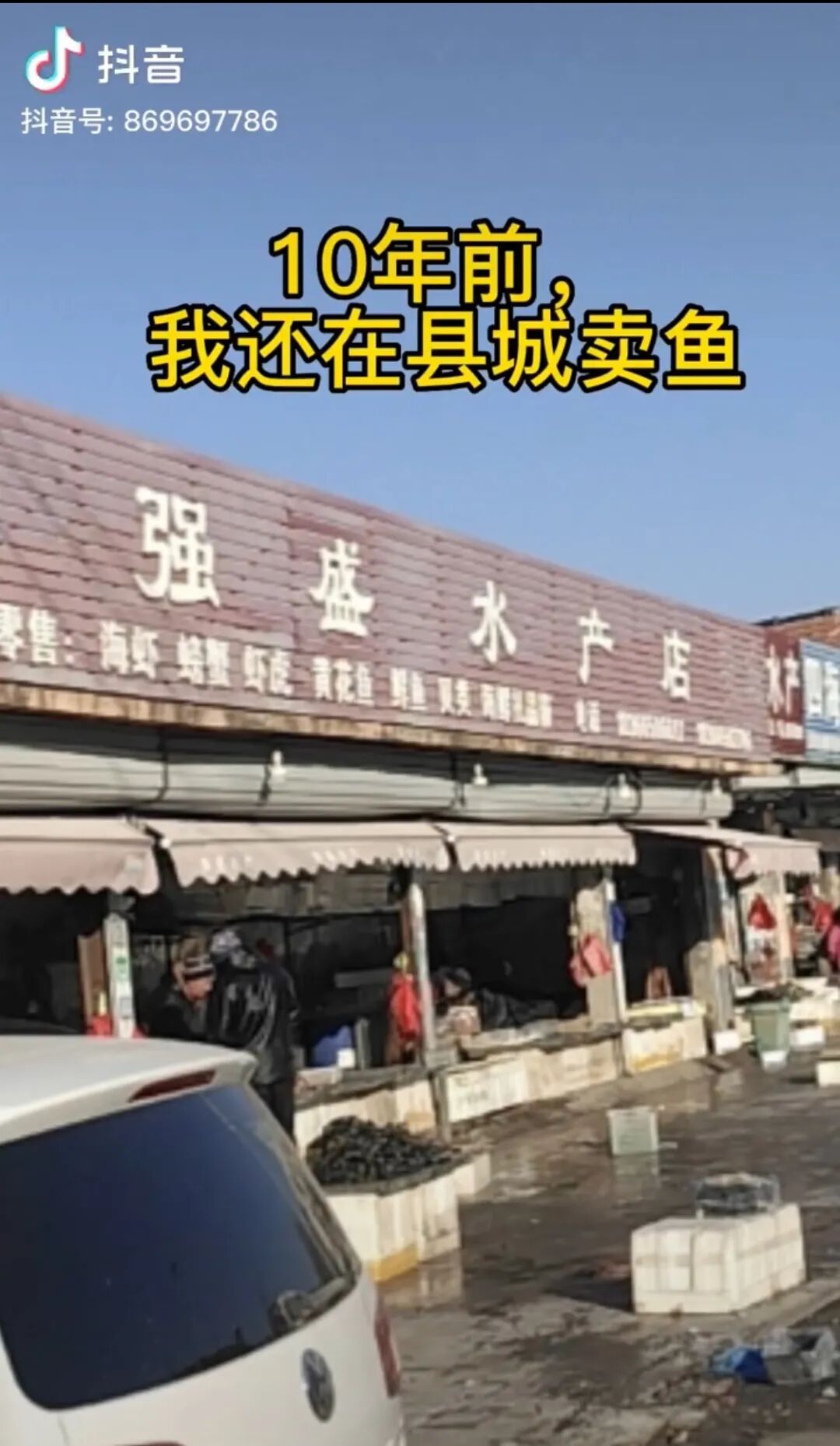 “十年前我还在县城卖鱼,开了一家强盛水产店。”