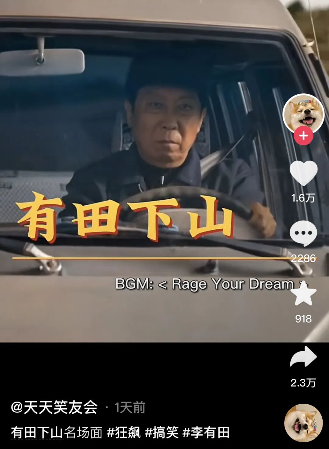 李有田。“有田下山”已经成为了抖音剪辑的名场面,被剪辑出了《速度与激情》、《秋明山车神》等多个版本。