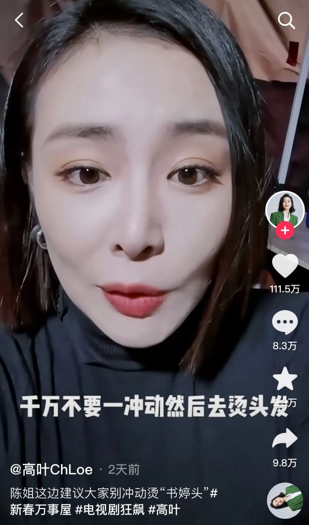 烫头失败的人太多,大嫂的扮演者@高叶 不得不专门告诉大家,嫂的头是次抛的,寻求一个永久发型不大实际,务必慎重考虑。