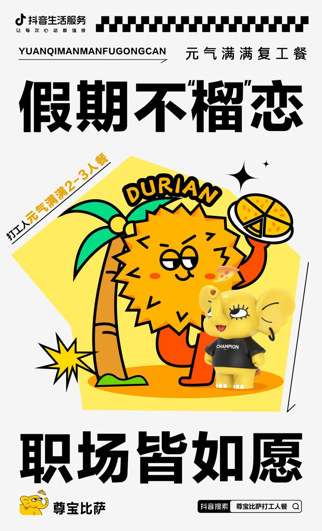 尊宝比萨推出“打工人元气满满餐”,主打芝士和榴莲的完美结合,让各位小伙伴在奶香浓郁的芝士,醇香软糯的榴莲和绵软劲道的手工披萨饼底的陪伴下,与假期道别,迎接新的开始。