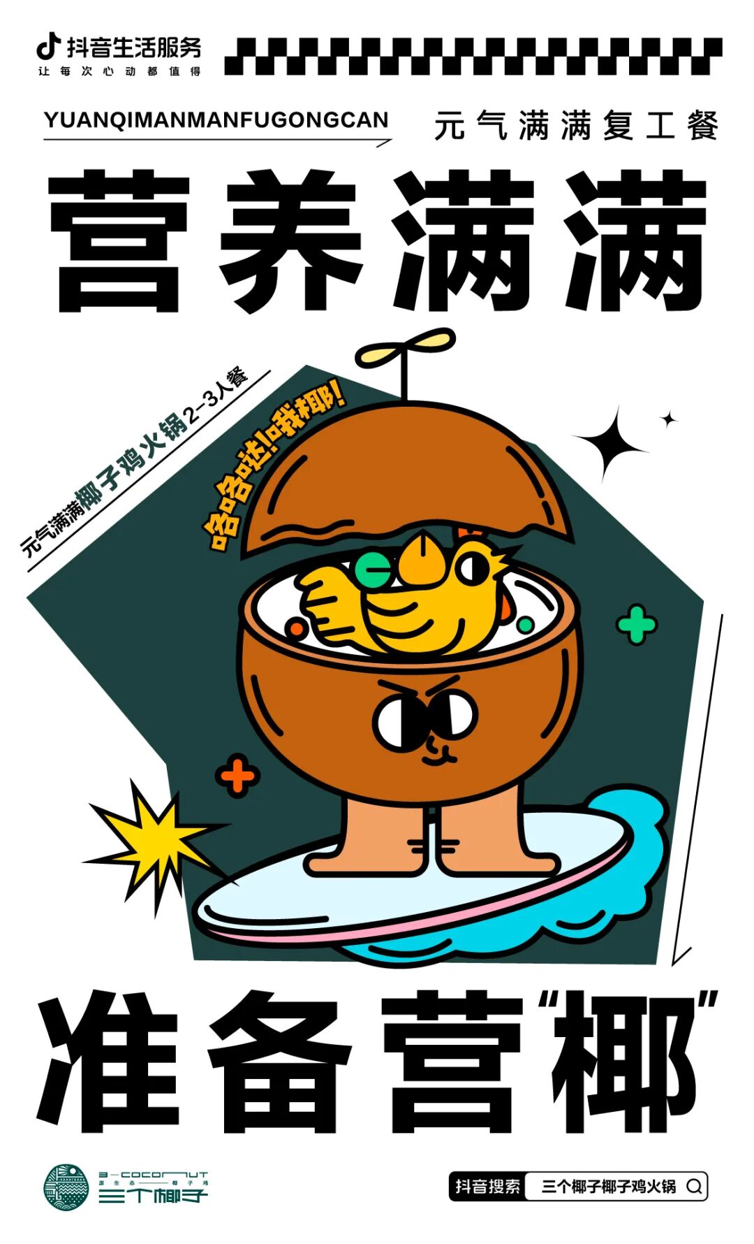 “三个椰子”原生态椰子鸡,每一锅都以海南椰青、泰国椰青、非洲椰皇做汤底,配上现宰现卖的文昌鸡,用原生态的美味和健康营养的食材为各位小伙伴恢复能量,踏上元气满满的复工之旅。