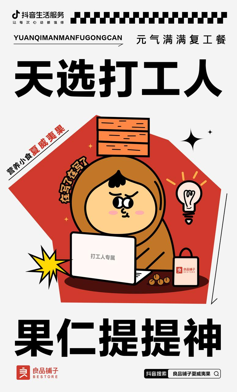 节后的工作压力有亿点点大,面对客户的需求却脑袋空空......国民品牌良品铺子携旗下超零食抵达“复工战场”,援助各位打工人状态回归。榛子、夏威夷果等“能量”零食,让你元气满满,创意爆棚的大脑正式回归。