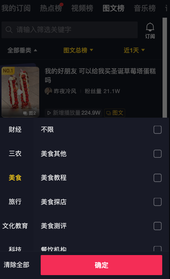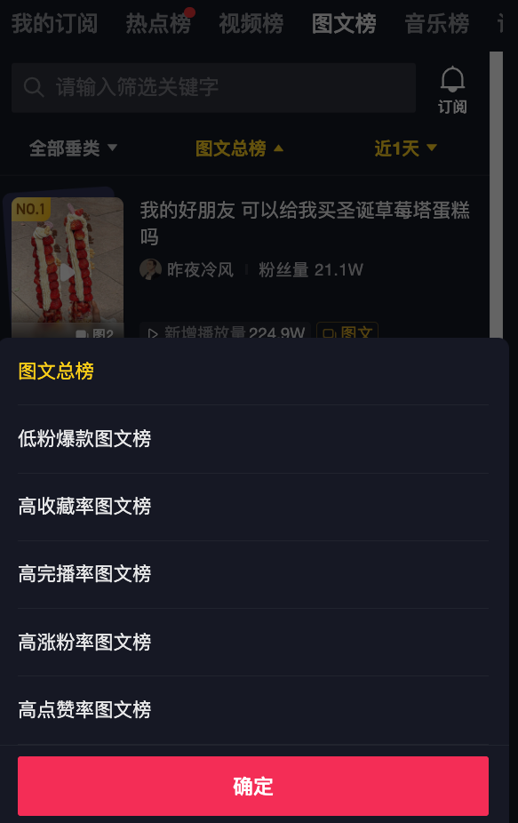 *【新技能】创作者可以通过「订阅」功能,选择自己帐号所在的垂类/赛道,每天可以在「我的订阅」页面查看自己最关心的榜单数据,花最少的时间,最高效地分析每一个赛道优秀作品,为自己订制打造一个专属特色榜单!