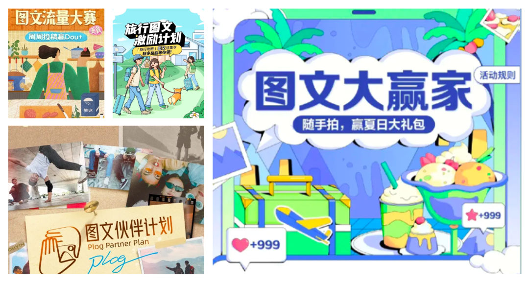 * 抖音官方马不停蹄地推出了,非常多重磅的图文官方活动和热门话题,比如#抖音图文来了、#图文伙伴计划、#美食图文流量大赛、#旅行图文激励计划、#图文大赢家、#图文热搜词创作任务等等。