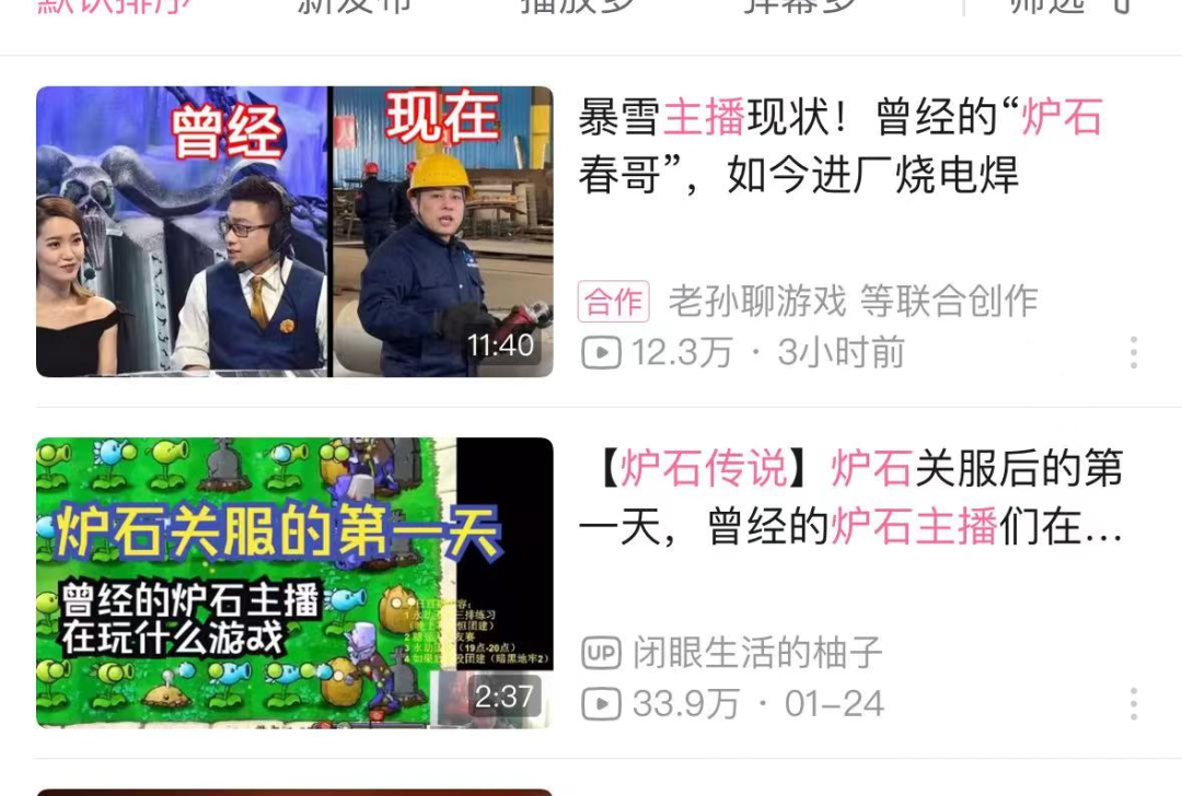 有游戏主播曾称,在暴雪网易官宣“分手”不久,B站炉石主播群公告开始鼓励所有炉石主播转播其他游戏,这个群才刚刚组建了2个月。为了帮助这些主播转行,官方给出了一系列方案,并给予流量上的支持。而在暴雪寻找新代理商、炉石传说在国内正式停服之后,炉石传说主播们聚在一起玩起了《鹅鸭杀》调侃自己为“下岗再就业”。