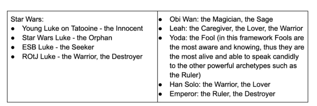 它们就在我们身边,在人类历史上一直是讲故事的支柱。今天,一个常用的原型框架是 "英雄之旅"。西方流行文化的大部分娱乐都是建立在这个基础上的,例如《星球大战》、《哈利-波特》等任何带有Marvel(漫威)印记的东西。在这些例子中,任何一个都出现了模式:主角通过不同的成长和成熟阶段,在旅途中体现出不同的存在方式,经常遇到代表其他不同原型的人。它们是自我实现的故事。使用卡罗尔-S-皮尔森的《唤醒内心的英雄》的语言和术语,以及有史以来最伟大的科幻系列,看看这些原型是否熟悉。这些原型中的每一个都带有双重性:光明和阴影。通常情况下,不同的角色会表达一个原型的不同侧面。在《星球大战》中,皇帝是影子毁灭者,达斯-维德是影子战士(从而为卢克设置了影子战士和光的战士之间的紧张关系,以及卢克对力量的黑暗面的紧张/诱惑)。