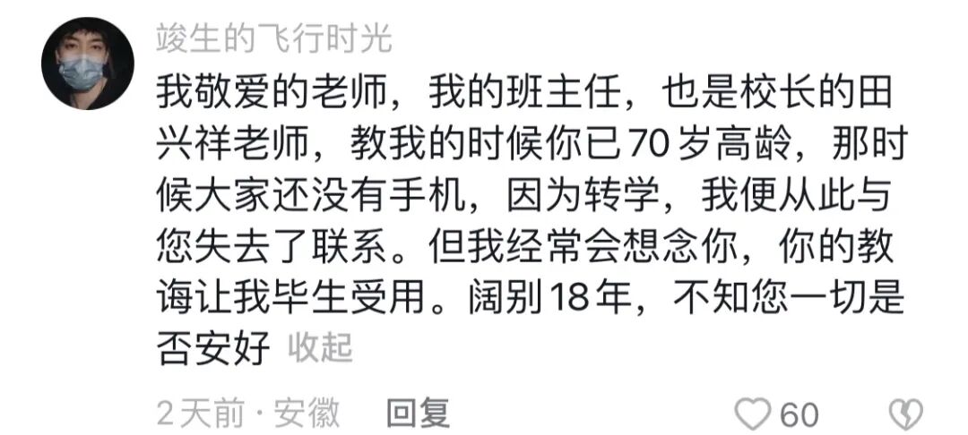 越来越多的抖音网友前来围观,很多人都被这种师生情谊打动,回忆起了自己的恩师。