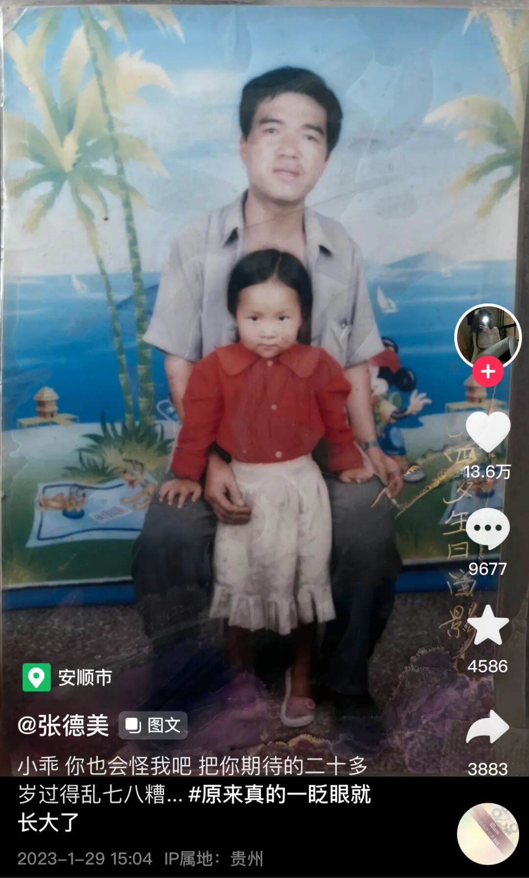 女儿在抖音发了自己和父亲的合影,表达对已逝父亲的思念。