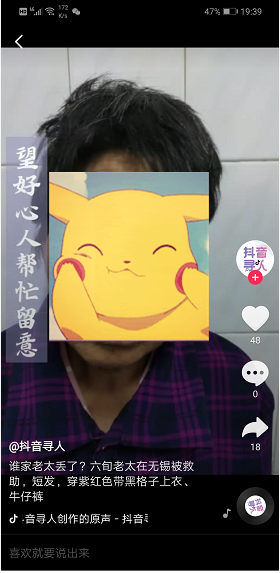 今日头条工作人员了解情况后,很快编辑发布了《谁家老太丢了?六旬老太在无锡被救助,短发》的寻亲信息,并同步上传了抖音寻亲视频。
