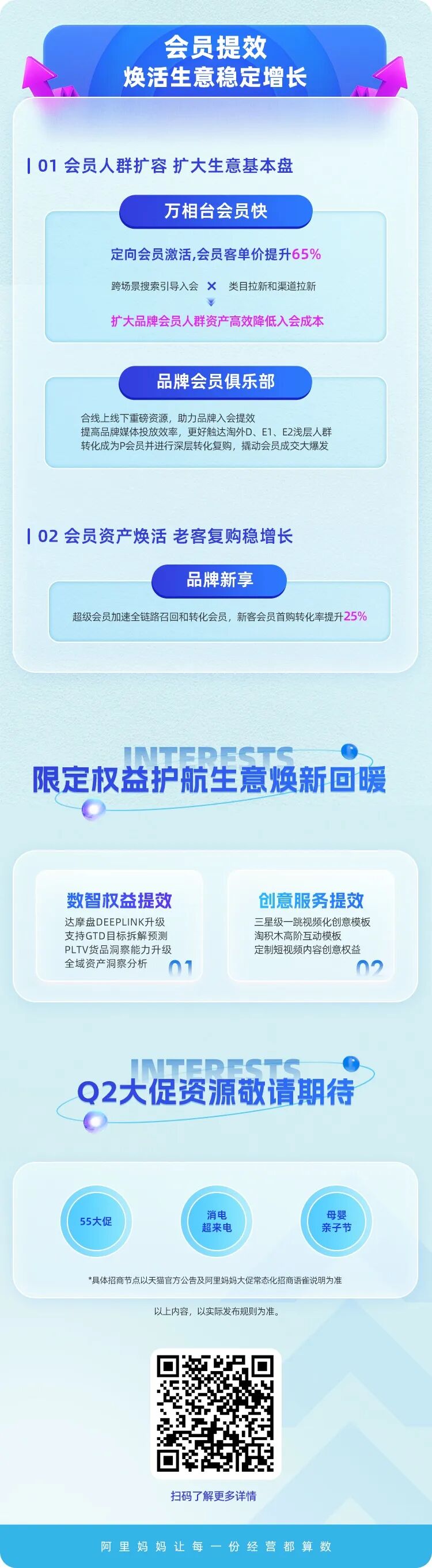 开年焕新计划:阿里妈妈推出开年焕新消耗返活动,重磅补贴4000万优惠券,中小商家专属定制特惠包,新商免费营销体验券,助力新春复苏。内容成长专项激励计划:以千万流量扶持,助力品牌乘风淘系内容化趋势;提升内容经营力,助力品牌以内容获新客、短直联动打爆品,加速内容高效转化。此外,还有工具升级、高额返点、创新玩法、数智权益、创意提效等多重加码持续释放,为品牌抢占焕新经营三大机会点、护航生意经营新周期。通过阿里妈妈数据洞察发现,“开年沉淀的新客在618大促时可贡献60%成交额”。由此可见,开年已然成为品牌经营长效增长的关键时机。