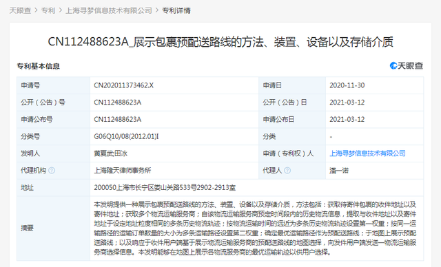 2021年,拼多多关联公司公开了多条物流相关的发明专利,包括“虚假运单识别”、“包裹预配送”、“订单物流时效管理方法、系统”等等。