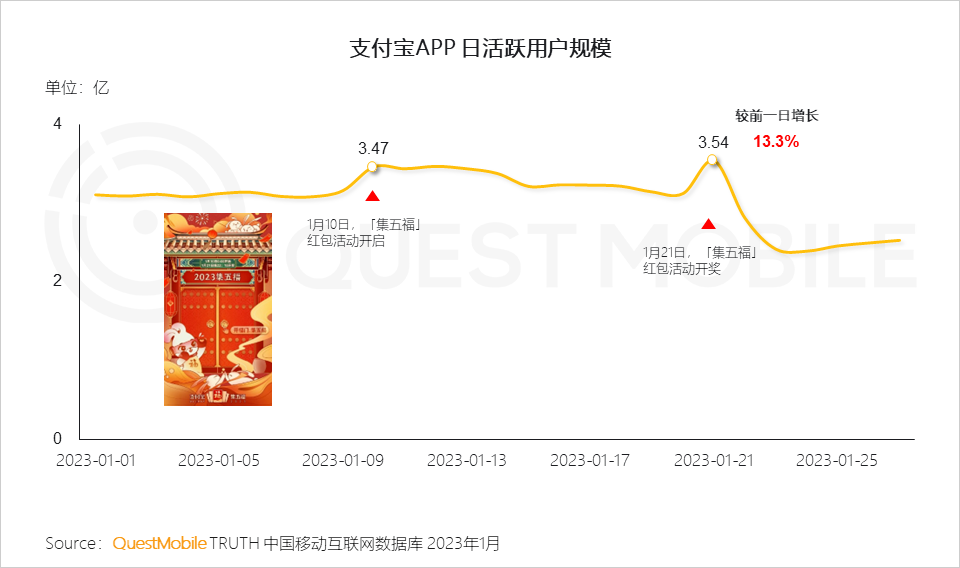 背后的根本原因,是用户打开频次高、停留时间短。这里同样援引QuestMobile的一组数据:今年春节期间,在一众日活超过5000万的APP中,支付宝的人均单日使用时长是最低的,只有7.8分钟。