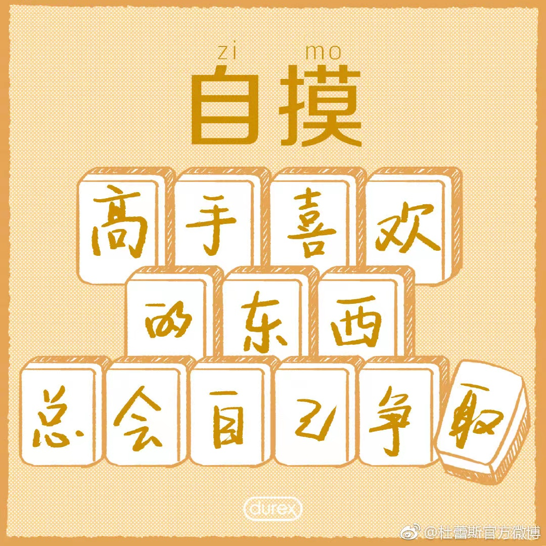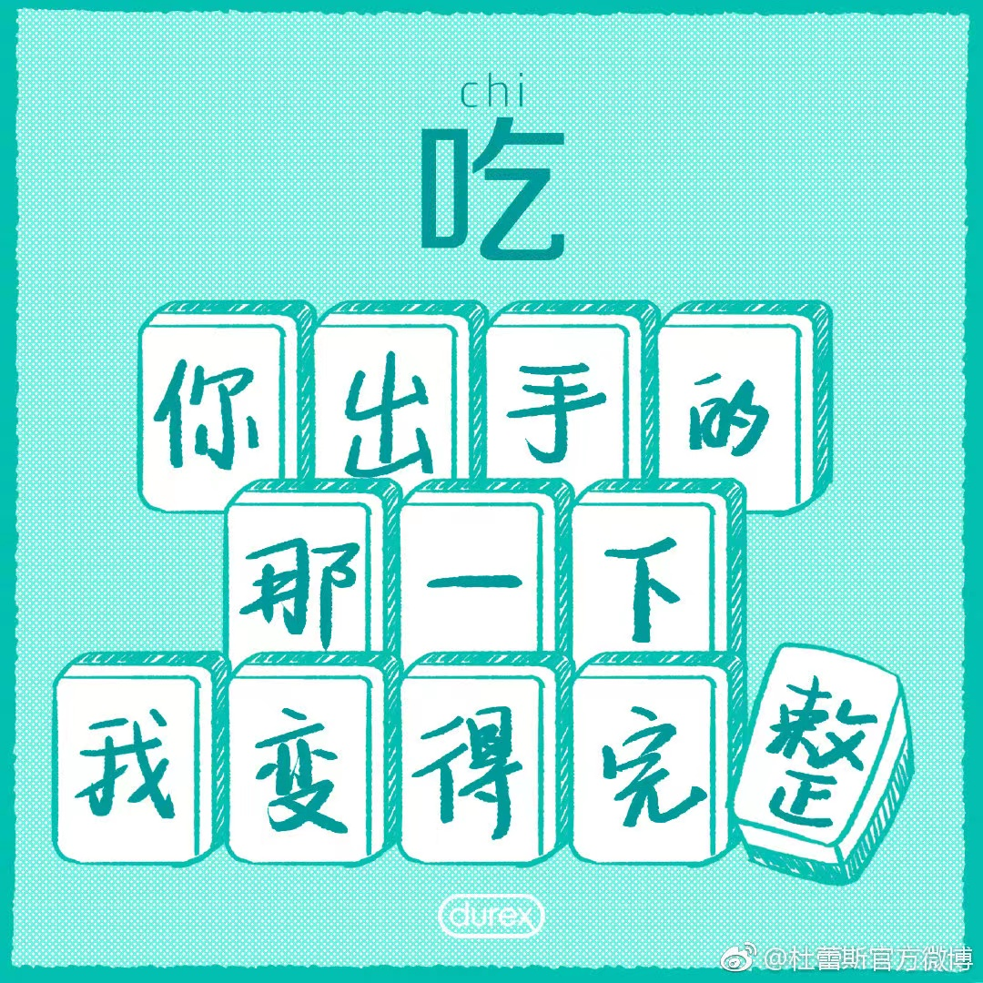 为亲自示范正确玩法,杜蕾斯还发布了一组谐音梗海报,巧妙借助麻将上的字进行创意组合,带来「麻将黑话」。