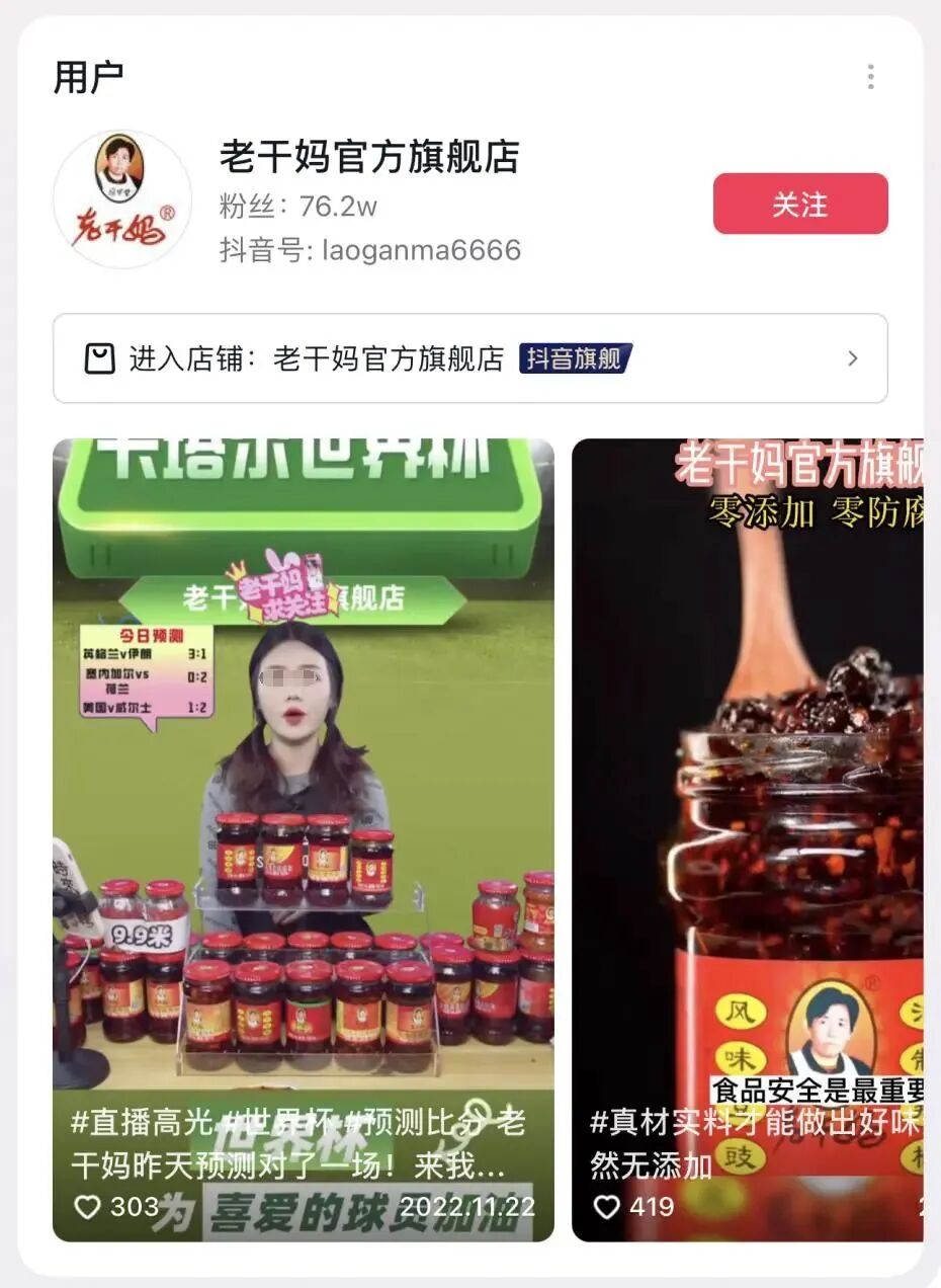 为了留住年轻消费群体,老干妈在营销上就下了不少功夫。例如在2018年老干妈与时尚杂志《男人装》联名推出定制款,2019年推出魔性洗脑广告《拧开干妈》。直播电商火热时期,创始人陶华碧更是亲自下场带货,但最终并没有掀起多大的波澜,抖音直播间也从2022年11月开始停更。![]()