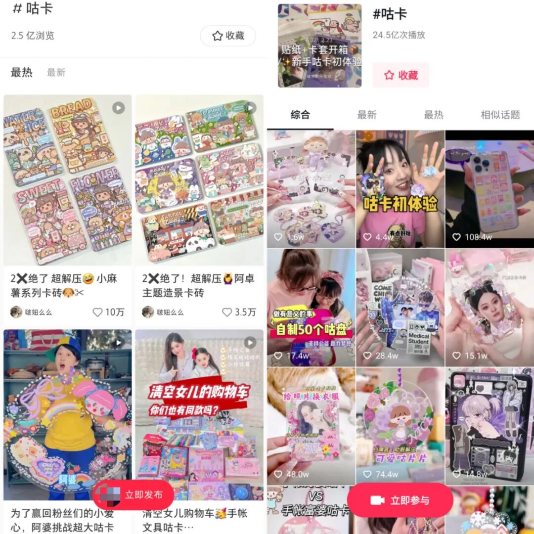 在小红书上有超过61万篇关于“咕卡”的笔记,浏览量达到2.5亿;抖音“咕卡”话题播放超过24.5亿次。