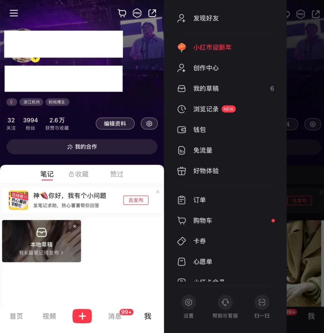 4. 个人主页新增购物车按钮。部分用户的测试版本中,“我”即个人主页右上角出现了购物车入口,用户可直接查看已加购商品以及相关商品推荐。同时,原本位于个人主页左侧菜单栏内的购物车入口目前也并未被取消,测试版本中用户可从包括商城在内的多个入口访问购物车。![]()