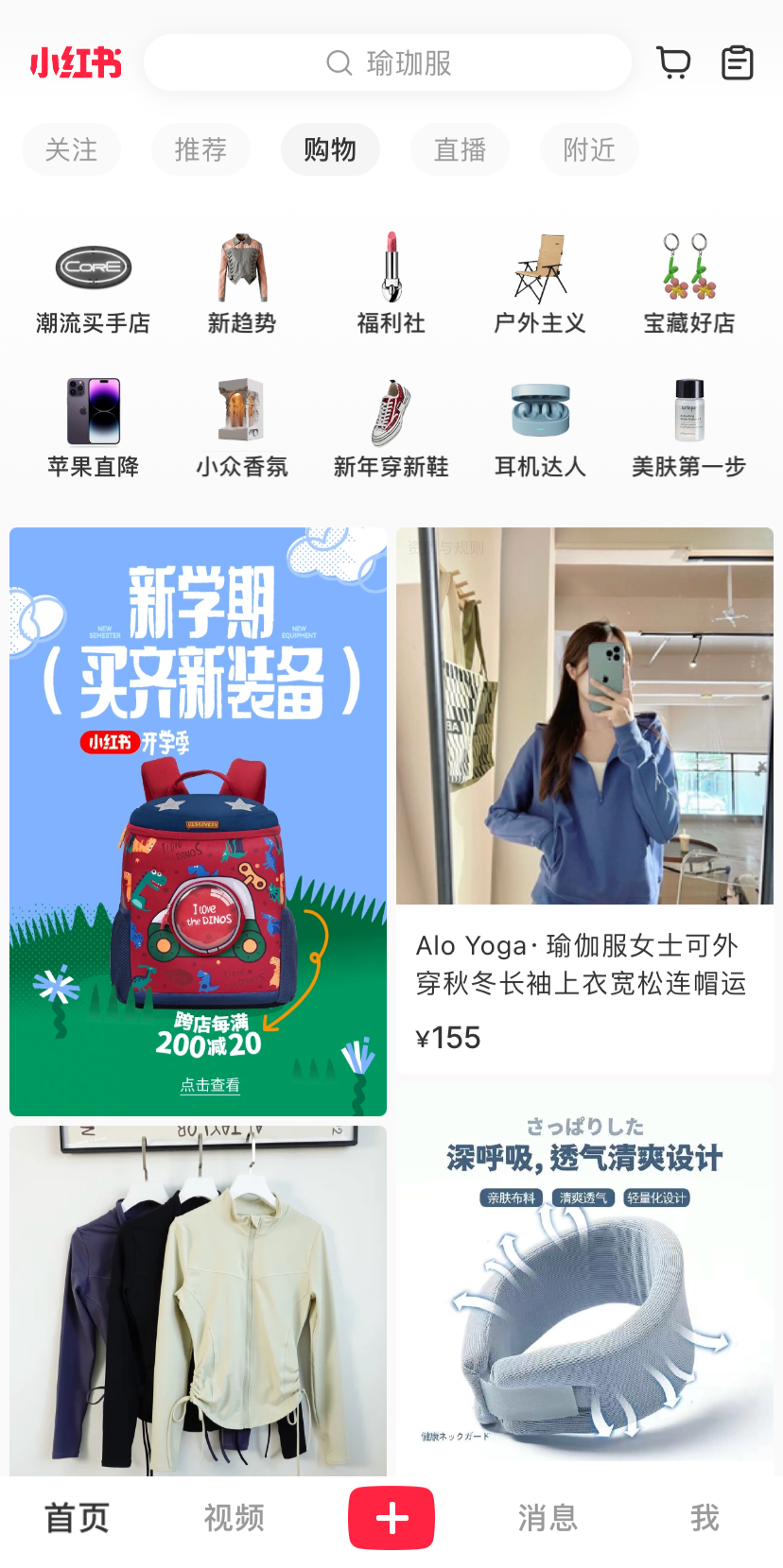 “新增视频流入口的改版测试去年下半年就开始了,而且其实不止视频入口,所以现在的还不是最终正式版本。”有接近小红书的人士透露,最初测试版本只面向5%的用户,但目前仍未全量覆盖。他指出,最终正式版的上线时间产品部门还未敲定,“目前还处在发现问题和解决问题的阶段,最终形态预计也将由测试结果决定,一切都有可能变化。”亿邦动力对比了多个不同地区、不同设备的小红书测试版本后发现,除了“视频”替换“购物”外,其它细节处的更新确实还存在一定差异。为了清晰展示,亿邦动力将目前最新测试版本中值得关注的更新细节整理如下:1. 被“视频”取代的“购物”即商城板块换到了上方频道栏中,与“推荐”、“关注”等频道并列。“直播”也被提到了上方频道栏中相对靠前的位置。最新的测试版本中,“关注”、“推荐”、“购物”、“直播”以及“附近”依次列于频道栏,用户可通过左右滑动页面进行频道的切换。