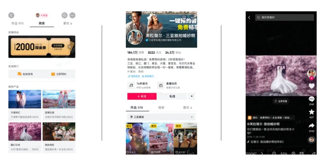 企业号为自然流量与付费流量的协同提供了更有效的连接方式:巨量引擎平台完善的商业产品体系,为不同行业的企业主提供品牌、效果等多类型广告产品,满足不同行业企业主通过广告为生意提效的诉求。商家通过AD广告(信息流/原生)DOU+、巨量千川、巨量本地推、巨量星图等产品,不仅可以达成理想的转化效果,还能实现品牌认同、传播扩圈、快速涨粉等其他经营目标。以本地场景为例,企业主不仅可以通过持续种草、到店转化+口碑传播的形式分享本地商品,还可以结合付费流量的应用,提升交易和营销效率。例如,旅拍婚纱「芙拉薇尔」就是通过善用“广告+经营”增长模式,打破了线上转化与线下旅拍的“次元壁”,实现了线索量倍级增长。从2018年尝试投放以来,「芙拉薇尔」营销预算一路从最初的 5% 迅速增长到目前的 50% ,2022年更是完成千万级年框广告签署,进一步加强商域流量的获取能力。通过销售线索收集、企业号推广、搜索与直播的组合布局,「芙拉薇尔」实现了付费流量与自然流量的结合,同时在投广优化过程中,通过企业号运营进一步强化了用户信任感,稀释了线上运营成本。在商域建设外,「芙拉薇尔」还进一步在私信、主页等私域场景,以及内容生产与传播的公域场景投入精力,实现了商私公三域、经营与营销能力的高效协同。2022年3月短视频行业活跃渗透率已高达78.2%,短视频和直播平台作为重要文化娱乐渠道,正在为用户提供更多价值。随着获取内容行为的变化,消费者也逐渐从过去被动接受信息,转向由兴趣激发的主动获取信息,如关注企业/商家的主页,追踪新品动态,这让企业号阵地经营成为提高整体线上经营的必经之路。