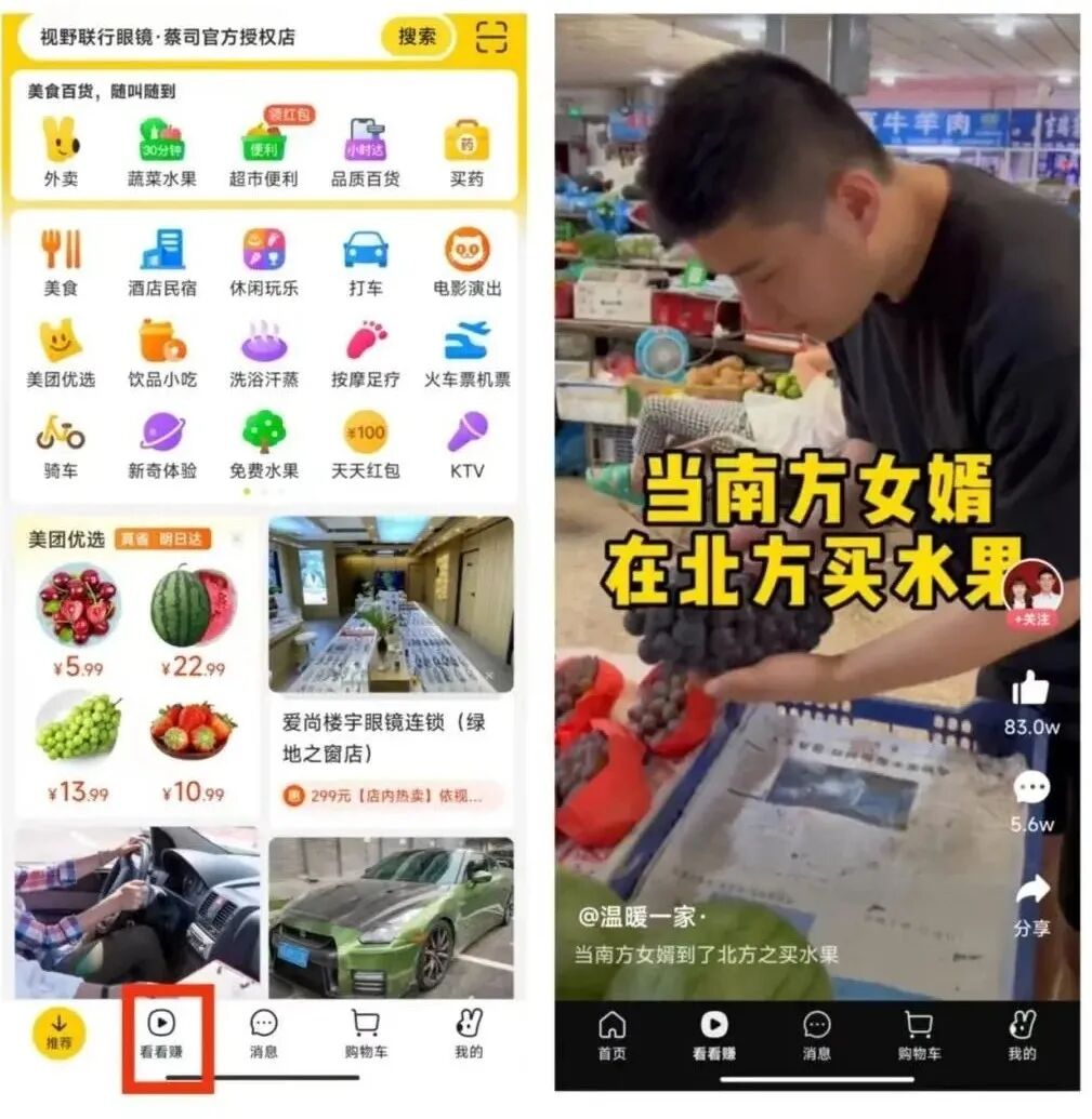 2月9日消息,据新熵报道,美团APP首页一级入口的第二个栏目开始内测“看看赚”短视频功能。目前尚未被覆盖到的用户,该位置仍显示为过去的“电商”。